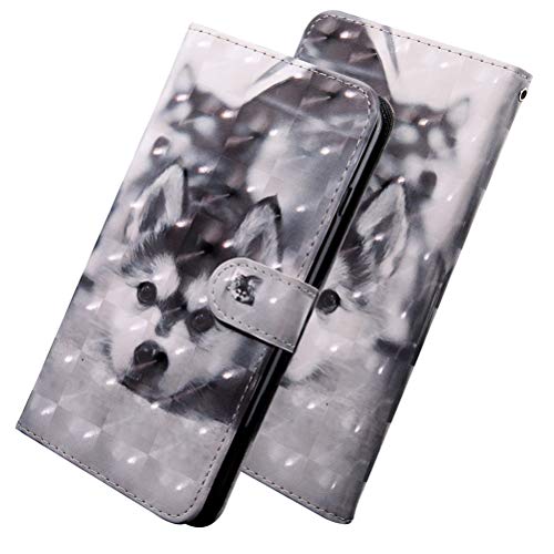 COTDINFORCA Compatible with Xiaomi Redmi Note 9 Custodia, Cool Animal 3D Effect Painted PU Leather Flip Chiusura Magnetica Titolare della Carta Stand Wallet Cover for Redmi Note 9 Cute Husky BX.