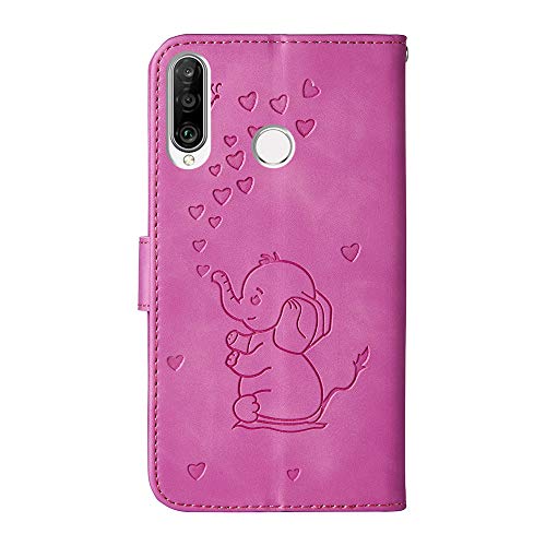 COTDINFORCA Huawei P30 Lite Custodia Flip, Forma di Cuore Art Elephant Protective Case Portafoglio in Pelle PU Magnetica Stand Function Cover per Huawei P30 Lite Love Elephant Rose.
