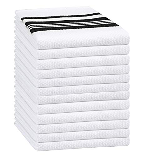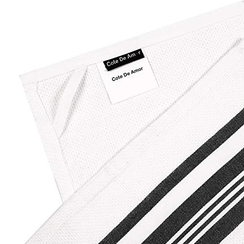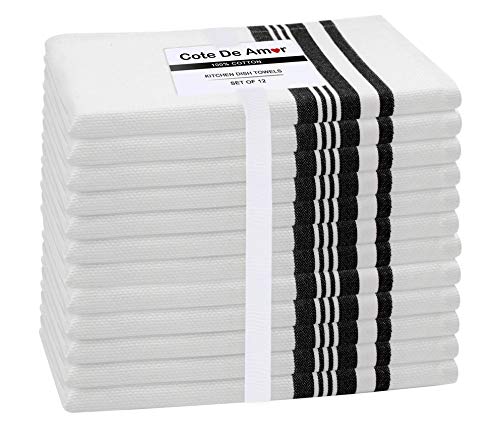 COTE DE AMOR Set di 12 Strofinaccio Cucina Cotone 40 x 66 cm, Strofinacci Asciugapiatti Assorbenti, Lavabili in Lavatrice Tovaglioli da Cucina Bianco e Nero