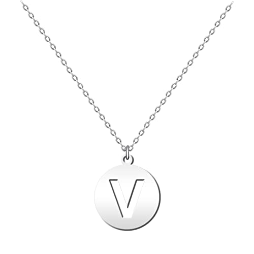 LETTERA V ELEGANTE: Un'espressione di semplicità ed eleganza, la collana con lettera presenta un ciondolo rotondo in acciaio inossidabile di 1,5 cm di diametro e una catena che ha una lunghezza di 50 cm e lo spessore di 1 mm, e chiusura facile da aprire e chiudere.