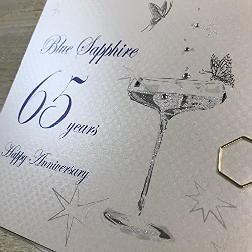 Cotone Bianco Carte BD165 Porcellana con Disegno Vetro con zaffiri Blu di 65 Anni Felice Anniversario Biglietto di Auguri Fatti a Mano 65 °