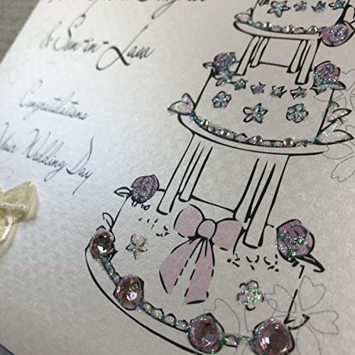 Cotone Bianco Carte BD28 a Una Figlia Speciale e Figlio in Legge, con la Scritta Inglese Congratulazioni per Il Giorno del Matrimonio