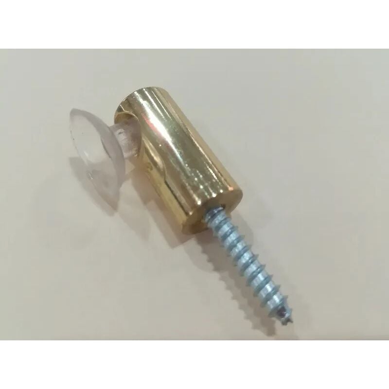 Morsetto reggicristallo in ottone in finitura ottone lucido diametro 12x25 mm. con filetto 4MA, completo di ventosa trasparente.