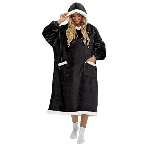 COTTEBED Felpa con cappuccio nera Sherpa da donna coperta indossabile da uomo con cappuccio maglione coperta con tasche coperta a maniche lunghe accappatoio adulto comoda felpa spessa getta nero