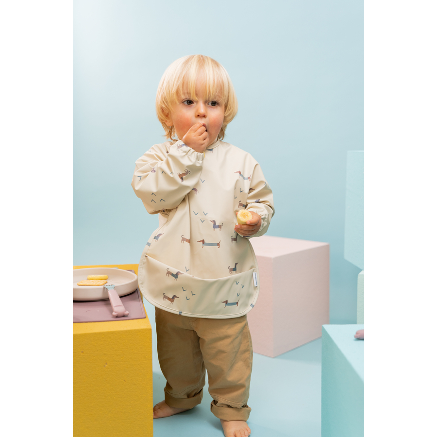 Dettagli del prodotto: Design: bassotto Adatto per 6-36 mesi Tessuto impermeabile Polsino elasticizzato Realizzato in 100% poliestere riciclato Oeko-Tex Adatto anche per progetti di artigianato o per l'asilo nido Sacchetto di raccolta incorporato Senza piombo - senza PVC - senza BPA - senza ftalati - senza vinile Facilissimo da pulire e da strofinare Materiale e cura: Materiale: 100% poliestere PU Cura: lavare in lavatrice a freddo e delicatamente. Non asciugare in asciugatrice, non stirare e non candeggiare.