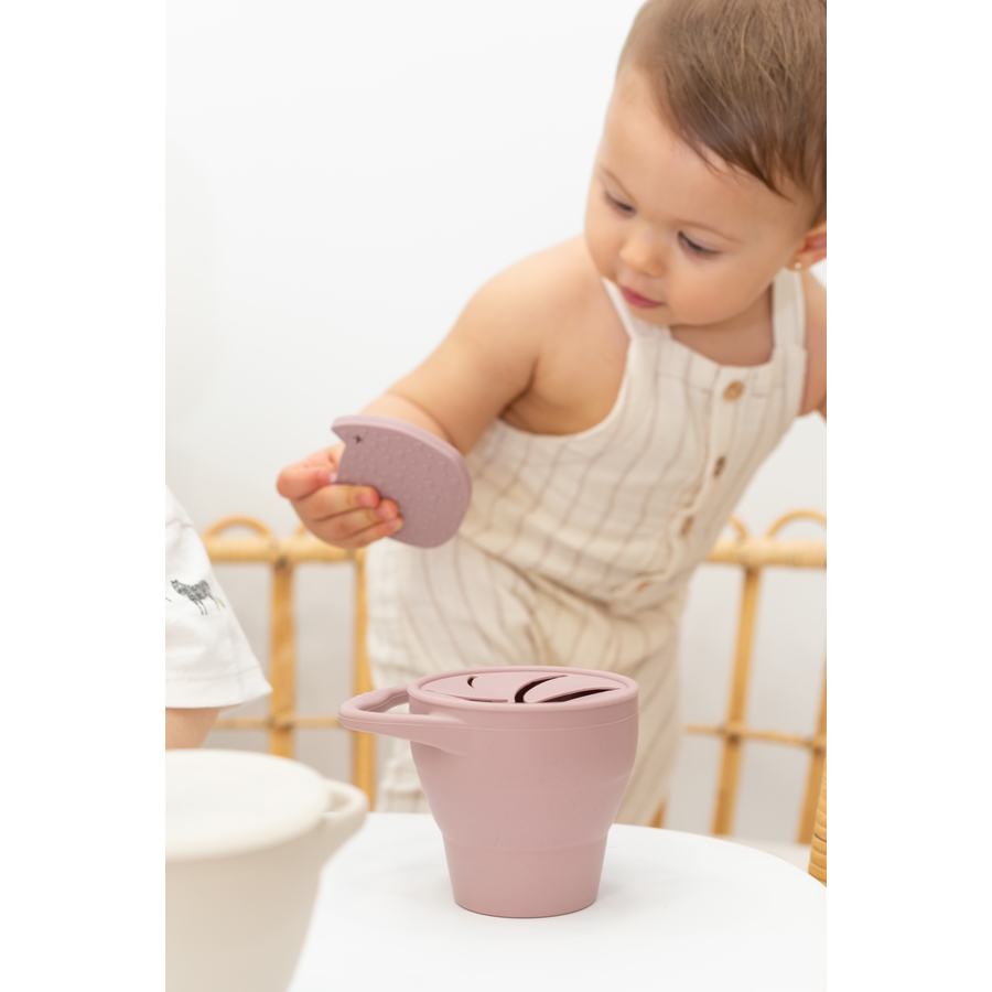 La tazza da snack Cotton Cloud è un vero tuttofare. Grazie alle lamelle di silicone attaccate, il tuo bambino non verserà nulla quando mangia. Ciononostante, il bambino può ancora mettere la mano nella tazza della merenda perché le lamelle sono fatte di silicone molto morbido e di alta qualità. La tazza si ripiega anche su un livello, così il bambino può raggiungere facilmente le merendine sul fondo. Il modern e, compatto Design non è solo pratico ma anche elegante. Dettagli del prodotto Realizzato in materiale siliconico di alta qualità al 100% Senza BPA, BPS, BPF, ftalati e PVC Lavastoviglie, microonde e congelatore Dimensioni: 9,5 x 9 cm