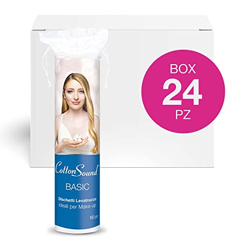COTTON SOUND BASIC Dischetti Struccanti 24 confezioni x 100 Pezzi, Dischetti 100% Cotone, Adatti a Tutti i Tipi di Pelle, Ideali per la Rimozione del Trucco, Made in Italy