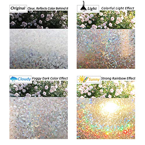 CottonColors Pellicola per la privacy delle finestre decorative per finestre 3D Adesivi statici adesivi per porte scorrevoli non adesive pellicole in vetro con blocco UV per la casa, 44,5 cm x 200 cm