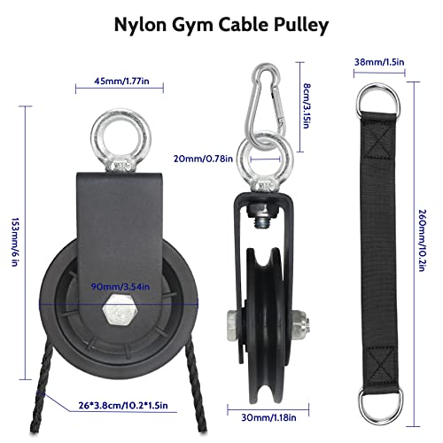 【Materiale di alta qualità】 La puleggia è realizzata in materiale di nylon, resistente alla ruggine, all'acqua e alla corrosione. I cuscinetti in metallo aumentano la capacità portante del prodotto, utilizzano la gravità e lo scorrimento per sollevare il lavoro, appendere oggetti o alleggerire i carichi e sono materiali ideali per gli accessori delle carrucola per il fitness.