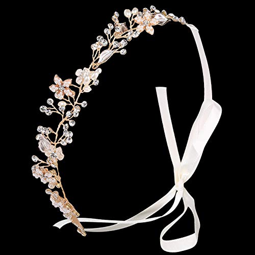 Coucoland - Cerchietto per capelli da sposa, con cristalli, accessorio per capelli da sposa, per damigella d'onore, con motivo floreale, con nastro in raso