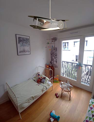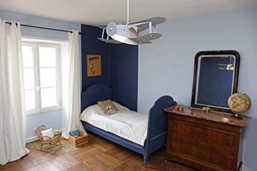 R&M Coudert - Lampada da soffitto per cameretta bambini, a forma di aereo, colore grigio cenere