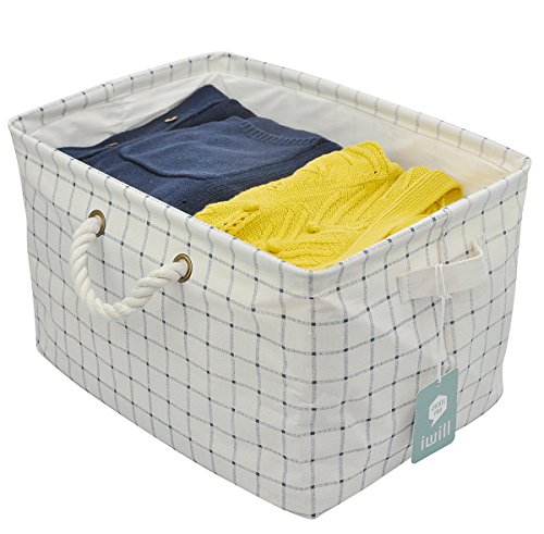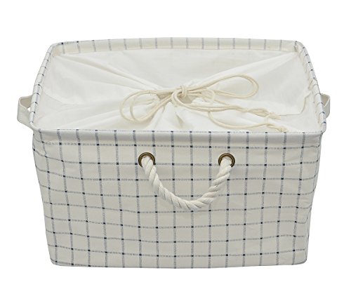 Coulisse Tela pieghevole domestica Organizzatore Cestino con maniglie, leggero per i giocattoli, Dorm camere silos di immagazzinamento per gli studenti universitari Usa, Blu CheckerOrganizzare Cesti per Abbigliamento bagagli - cestini di stoccaggio in cotone ecologico. Lavora come tessuto cassetto, bambino bagagli, giocattolo bagagli. Cesti vivaio di alta qualità misura più ripiani, Blu marino