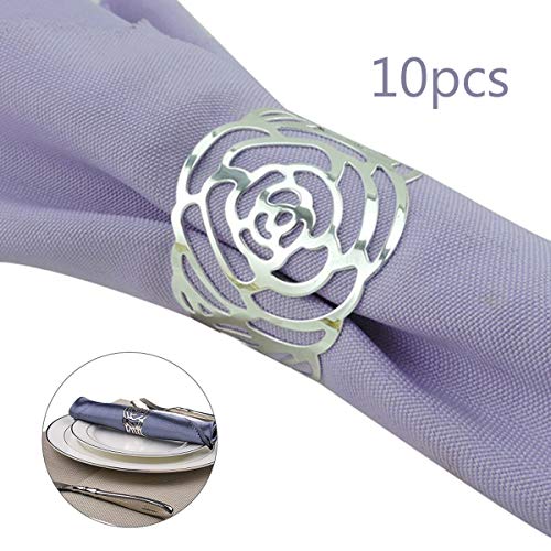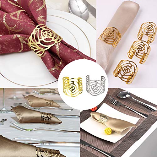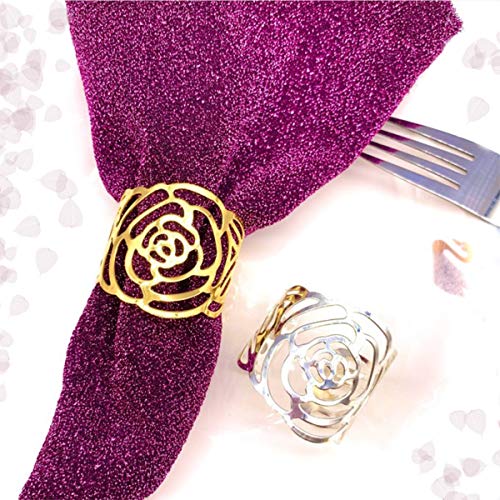 Counius 20 Pezzi Portatovaglioli in Metallo Forma di Rosa Anelli Portasciugamani Gold Argento per Decorazione Della Tavola,Festa,Nozze