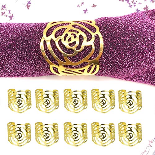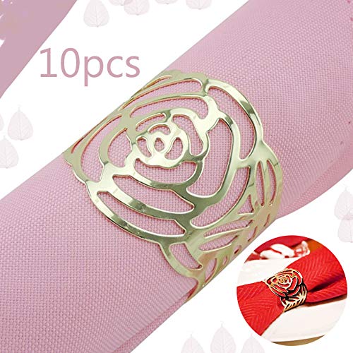 【Regalo romantico】 Il set di anelli per asciugamano da 20 pezzi, di cui 10 in oro e 10 in argento, la forma a rosa è molto adatto per la tavola romantica e può essere utilizzato anche per bomboniere e bomboniere.