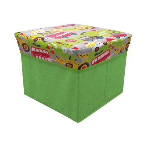 Country Club - Scatola portaoggetti quadrata, con coperchio imbottito, disegno: lavori stradali, 30 x 30 x 32 cm