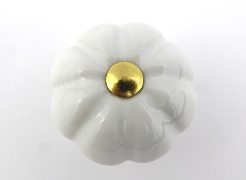 Country Style porcellana fiore Pomoli bianco ottone lucido - medie dimensioni 34 mm - qualità Stilmelange in Europa dal 1998