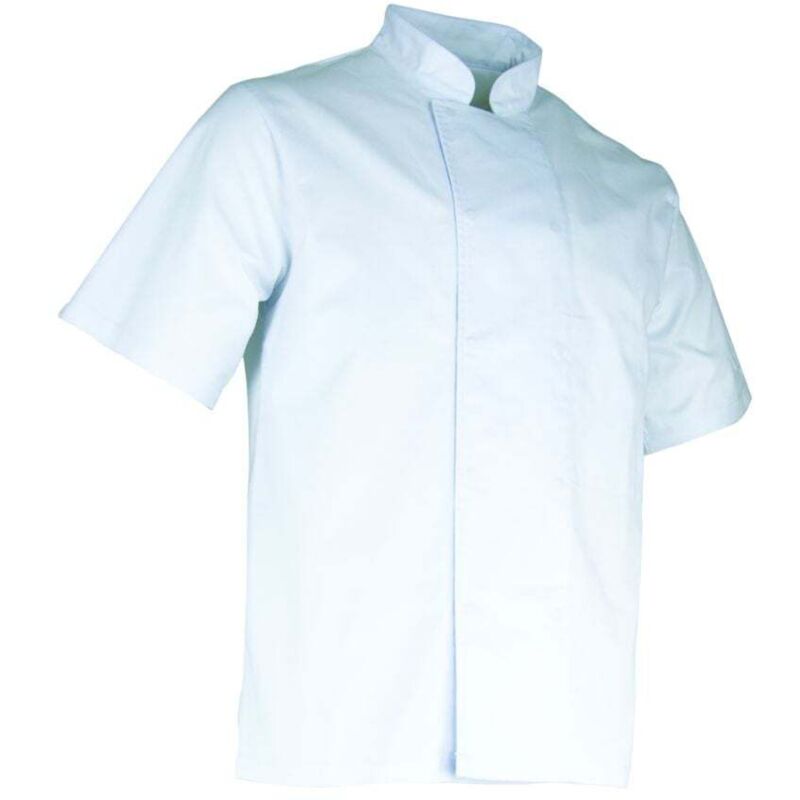 Dettagli: Tessuto robusto e morbido Colletto da ufficiale, doppia abbottonatura con bottoni a pressione nascosti Tasca portapenne sulla manica, 1 tasca interna Ricamo nero in tinta con gli elementi delle tasche Caratteristiche: 65% poliestere 35% cotone - 245gr/mq BiancoM