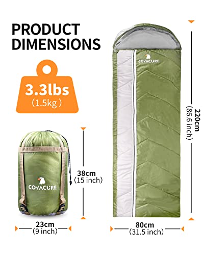 【Sacco a pelo da esterno per 4 stagioni】Il sacco a pelo COVACURE 210 * 78 cm è progettato per dormire bene la notte dopo un'intera giornata all'aperto. Può essere utilizzato per 4 stagioni da 5 ℃ a 15 ℃. Non importa quanto duro e ruvido sia il pavimento, il tuo sacco a pelo è sempre comodo.