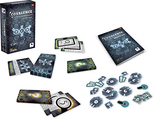 Covalence è un gioco di carte cooperativo a tema chimico in cui i giocatori lavorano insieme per costruire con precisione una serie di molecole organiche segrete. Un giocatore è a conoscenza di un insieme di molecole segrete e tutti gli altri devono dedurre quali sono queste molecole in base alle tracce che vengono date loro. I giocatori devono costruire le loro molecole collaborando prima che le tracce siano finite