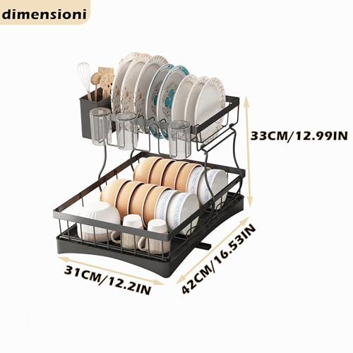 COVAODQ Scolapiatti,Scolapiatti a 2 Strati, scolapiatti da appoggionero,con Rimovibile Vassoio Gocciolamento (nero)