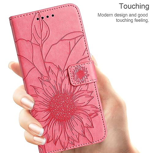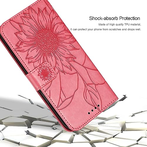 Cover per Apple iPhone 13/14 Custodia per Telefono Elegante Girasole in Rilievo Con Slot per Schede Multiple Custodia per Apple iPhone 13/14-Rosa Rossa