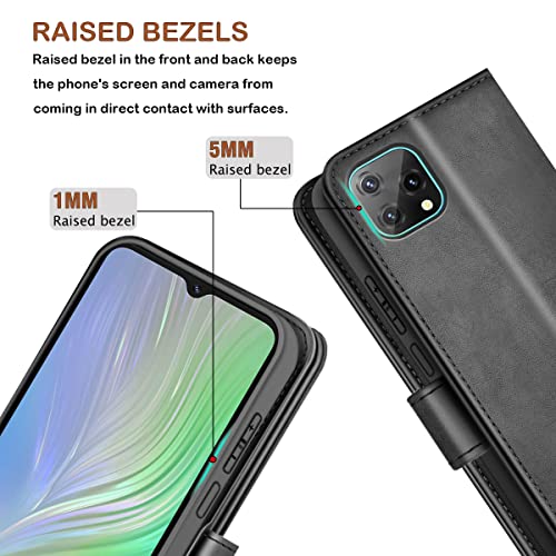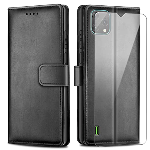 Cover Per Blackview A55 4G / Oscal C60, Nero PU Pelle Portafoglio [Chiusura Magnetica] Libretto Flip Protettiva Custodia con 1 Vetro Temperato Pellicola Protettiva Per Blackview A55 / Oscal C60 6,53''