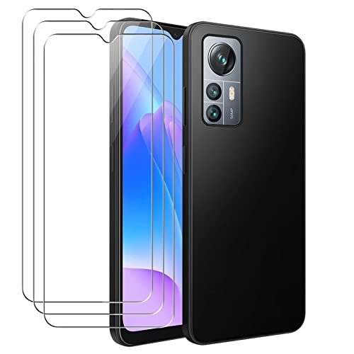 Cover per Blackview A85 + 3 Pezzi Pellicola in Vetro Temperato, Custodia Nero in Silicone Opaco Ultra Sottile Morbido TPU Anti-Scivolo Protezione Case per Blackview A85