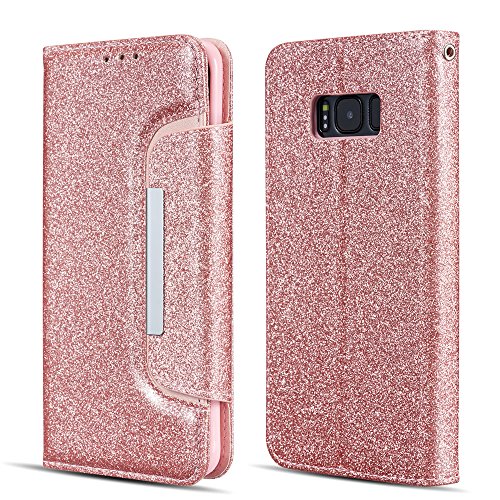 Cover brillante magnetica, in pelle, per Samsung A, di grandi dimensioni, Rose gold, Samsung Galaxy A5 2017