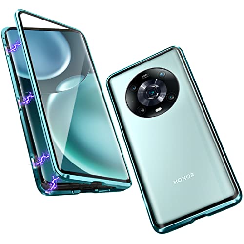 Cover Compatibile con Honor Magic 4 Pro, Adsorbimento Magnetico Custodia 360 Protezione Tattile Vetro Temperato Bumper Metallo Magnetica Case, Verde
