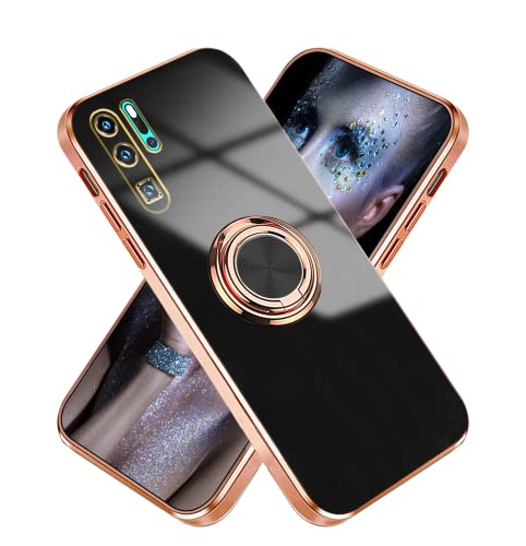 Cover Compatibile con Huawei P30 Pro Cover Silicone TPU, Cover Huawei P30 Pro con Anello Rosa, Custodia Huawei P30 Pro Case Morbido (Nero, Huawei P30 Pro)