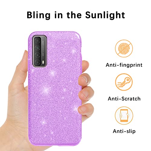 Cover Compatibile con Huawei Y7a Cover Huawei P Smart 2021 Cover Silicone, Cover Huawei Y7a Glitter Rosa, Custodia Huawei P Smart 2021 Glitter 3 in 1 Case (Viola, Huawei P Smart 2021/Y7a)