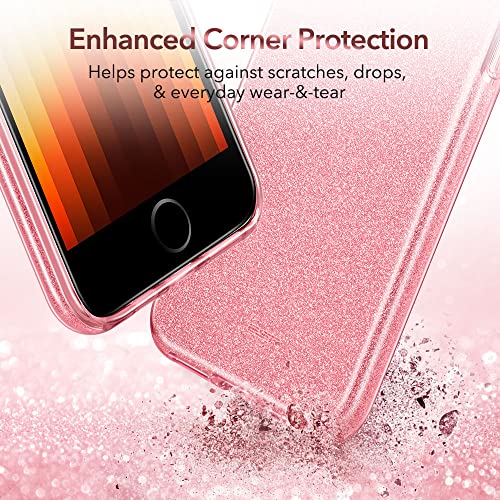 ESR Cover Compatibile con iPhone SE 2020,8,7, Custodia Glitterata da Donna Tre Strati Supporta la Ricarica Wireless, Compatibile con iPhone SE 2020 & iPhone 8,7, Oro Rosa Brillante