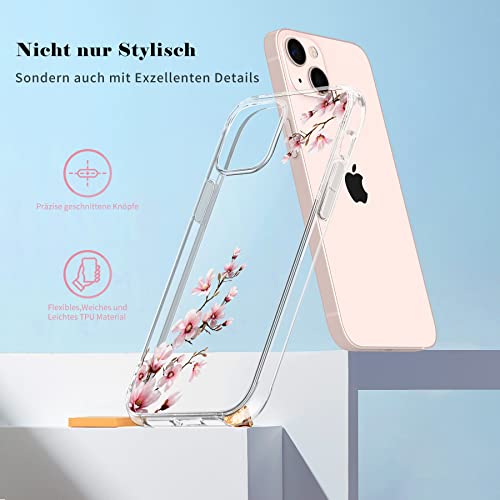 Cover Compatibile con iPhone 13 Mini 5,4 Pollici, Custodia ultra flessibile trasparente con motivo fiore di pesco