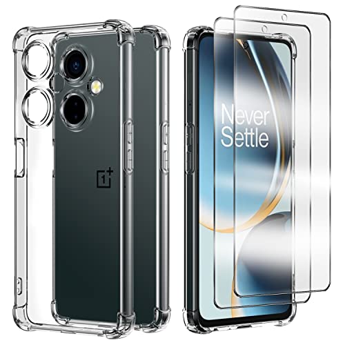 【Pacchetto da 3 confezioni】: il pacchetto di aggiornamento include 1 custodia per telefono trasparente,1 pezzi di protezione per schermo in vetro temperato, Custodia in silicone trasparente per OnePlus Nord CE 3 Lite.
