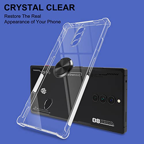 Cover Compatibile con REDMAGIC 8 Pro, Custodia Trasparente Silicone con Anello Ruotabile Cavalletto, Quattro Angoli Anti-Caduta Crystal Clear Case - Anello Nero
