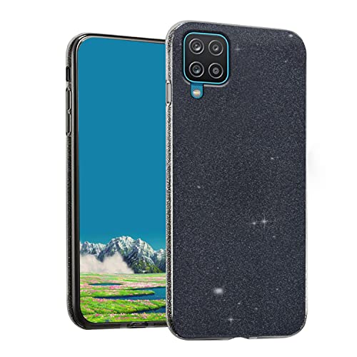 Cover Compatibile con Samsung Galaxy A12 Cover Silicone, Cover Samsung A12 Glitter Rosa, Custodia Samsung A12 Cover Glitter 3 in 1 Case (Nero, Samsung A12)