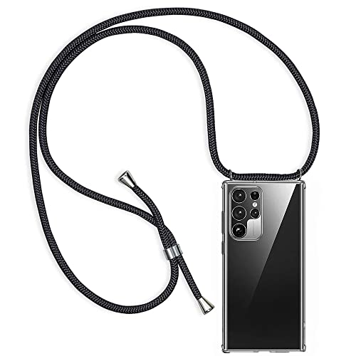 Cover Compatibile con Samsung Galaxy S22 Ultra 5G, Trasparente Custodia con Cordino per Samsung S22 Ultra 5G, E-Lush Ultra Sottile Morbido Silicone TPU Gel Antiurto Protettiva Case con Collana - Nero