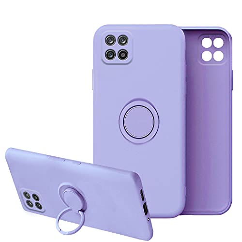 Cover Compatibile con Samsung A22 5G Cover Silicone Liquido, Cover Samsung A22 5G con Anello Viola, Custodia Samsung A22 5G Case Morbido (Viola, Samsung A22 5G)