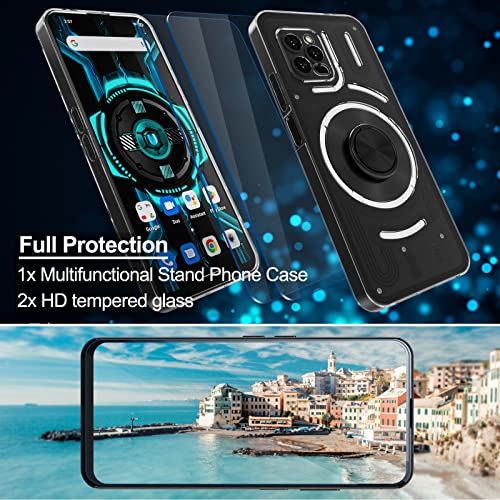 Cover Compatibile con Unihertz Luna, Custodia Trasparente Silicone con Anello Ruotabile Cavalletto, Quattro Angoli Anti-Caduta Crystal Clear Case - Anello Nero