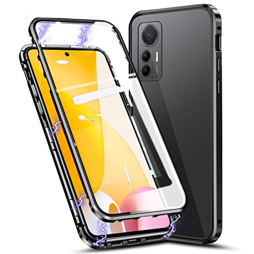 Cover Compatibile con Xiaomi 12 Lite, Adsorbimento Magnetico Custodia 360 Protezione Tattile Vetro Temperato Bumper Metallo Magnetica Case, Nero