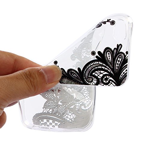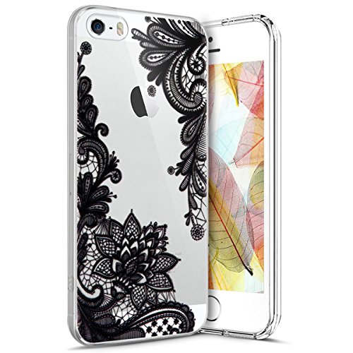 Cover Compatible con iPhone 5S/SE,Surakey Ultra Sottile e Morbida Custodia Silicone Trasparente con Disegni Fiore Cristallo Chiaro Gomma Soft Touch Skin Slim Protettiva Cover,Fiore Pizzo Nero