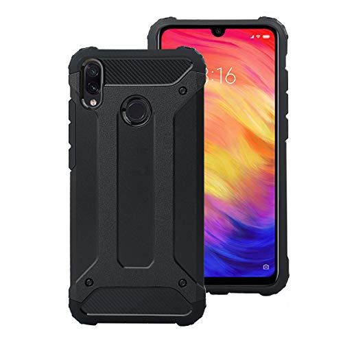 Cover Compatible per Xiaomi Redmi Note 7 + Pellicola Protettiva, Weideworld Hybrid Dual Layer Armor Soft TPU Bumper PC Rigida Protettiva Case Cover Custodia per Xiaomi Redmi Note 7, Nero