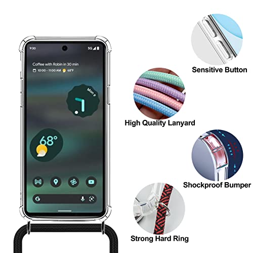 Cover Cordino Compatibile con Google Pixel 6a, Custodia Collana Vetro Temperato Trasparente TPU Morbido Silicone Regolabile Antiurto Case, Notte Verde