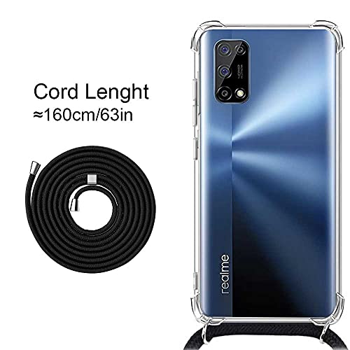 Cover Cordino Compatibile con realme 7 5G, Custodia Collana Proteggi Schermo Trasparente TPU Morbido Silicone Aria Cuscino Regolabile Antiurto Antiscivolo Protettiva Case, Rosa