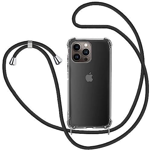 Cover con Cordino per iPhone 13 Pro Max, Custodia con Laccio Trasparente Morbido Silicone Necklace Regolabile Antiurto Antiscivolo Protettiva Tracolla Case, Nero