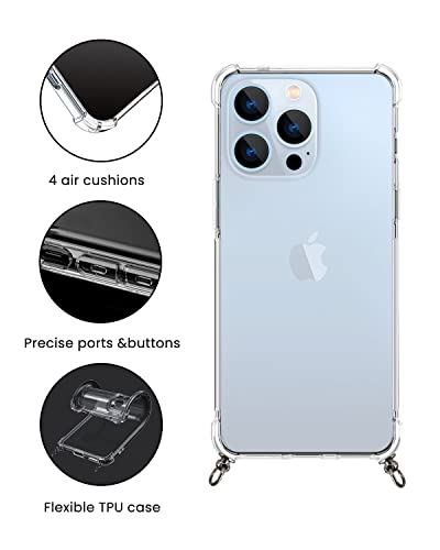 [Compatibile]: Custodia a catena per cellulare con cavo compatibile con iPhone 14 Pro (6,1"). La protezione della fotocamera è integrata nella parte posteriore della custodia del telefono.