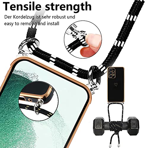 Cover Cordino per Xiaomi Mi 12T, Custiodia con Collana Ultra Sottile Morbido Silicone TPU Antiurto AntiGraffio, Cuore Carino Corda Case Protezione Fotocamera, nero
