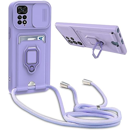 Cover Cordino per Xiaomi Redmi Note 11 4G /Note 11S, Armor Custiodia con Slot Schede Collana, Silicone Regolabile Staccabile Shock Absorption Anello Supporto Corda Case Protezione Fotocamera, Viola