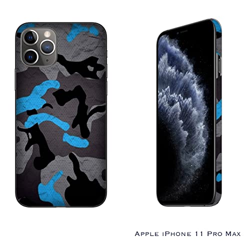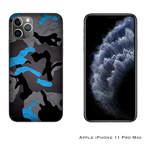 Cover Custodia compatibile con Apple iPhone 11 Pro Max Militare Mimetica Camouflage Military Army Nero Grigio e Blu/Stampa anche sui lati/Telefono Rigido Snap on Antiscivolo Antigraffio Antiurto P