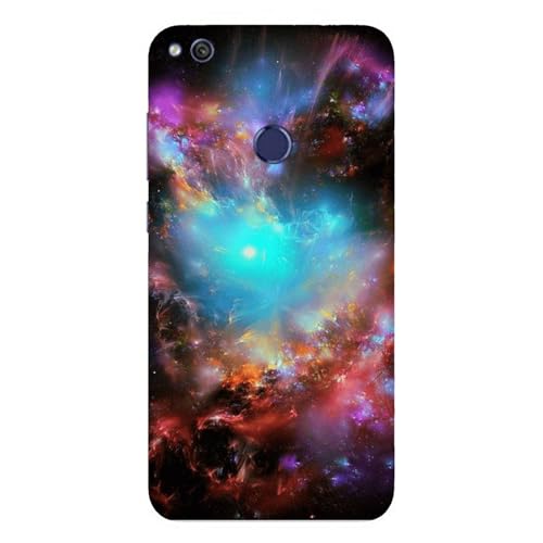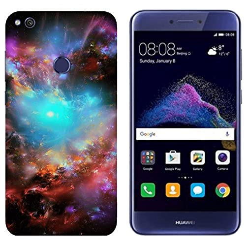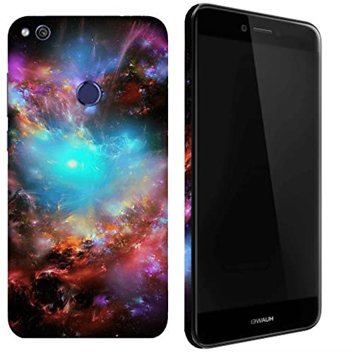 Cover Custodia Compatibile con Huawei P8 Lite 2017 | Pra-LA1 | Pra-LX1 Nebulosa di Orione nello Spazio Azzurro Arancione Rosso/Stampa Anche sui Lati/Telefono Rigido Snap on Antiscivolo AntiGraffio